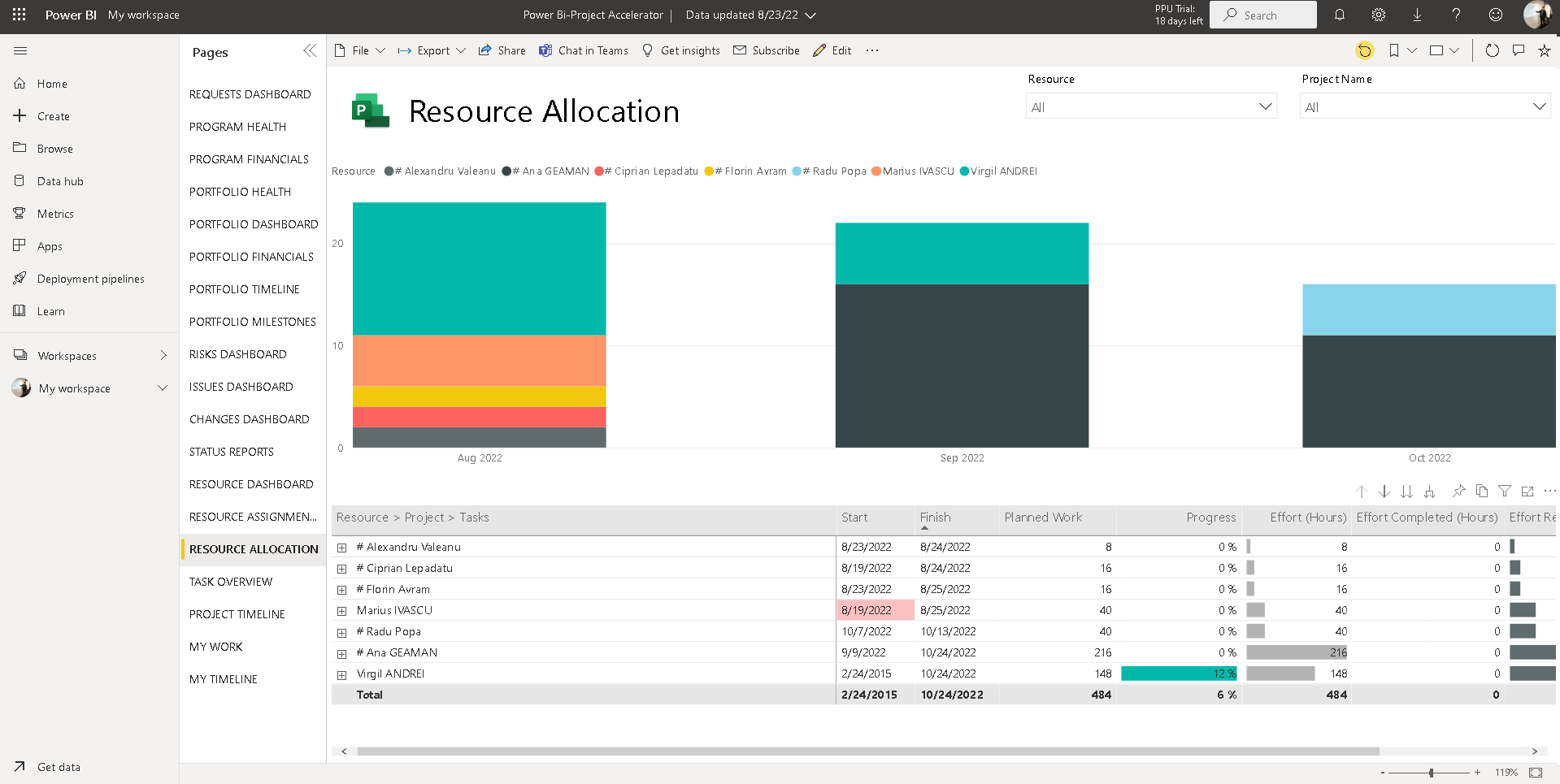 Microsoft Power BI- Project for the Web- rapports de projet automatique