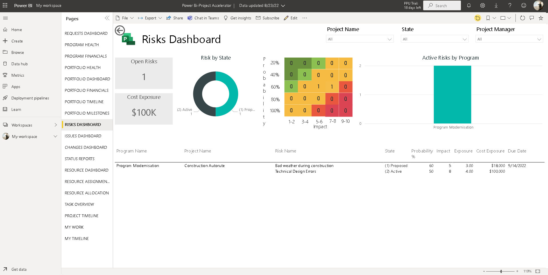 - Les utilisateurs peuvent travailler sur d’importantes tâches de planification de portefeuille, ainsi que surveiller et planifier des projets — à partir de leur navigateur, à un niveau simpliste, ou en utilisant l’application Microsoft Teams